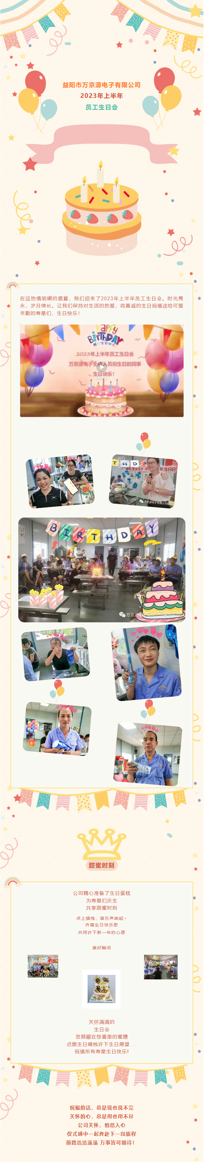 【概要描述】在這熱情明媚的盛夏,我們迎來了2023年上半年員工生日會。時光雋永,歲月綿長。讓我們保持對生活的熱愛,將真誠的生日祝福送給可愛辛勤的壽星們,生日快樂!
